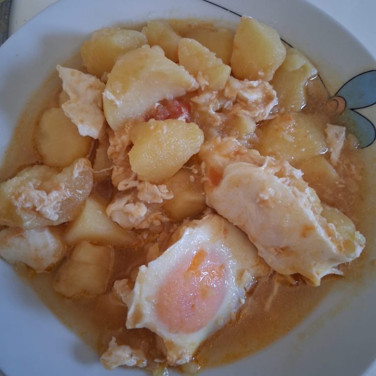 Añadimos agua hasta cubrir y dejamos cocinar 20 minutos a fuego medio. Cuando los chicharos estén tiernos agregar los huevos para que se cuajen.